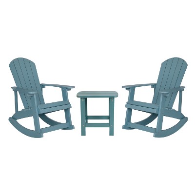Emma and Oliver Three Piece Hammond Adirondack Style Conversation Set with Two Chairs and Matching Side Table for Indoor and Outdoor Use