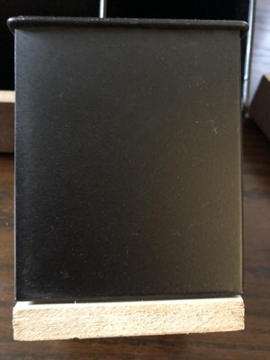 [This review was collected as part of a promotion.] This 3 piece organizer has a modern rustic look to it and compliments my modern farmhouse decor nicely. The main organizer measures 9.75”x7”x6”, the pen cup measures 3.25”x3.25”x4.5”, the small holder measures 3.25x2.5”x1.5”. Perfect for tidying up my desktop and having things easy to get to. It is made of a heavy metal with a matte black finish and with rustic wood accent trim.