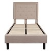 Product Name: Emma and Oliver Twin Size Panel Tufted Upholstered Platform Bed in Beige Fabric