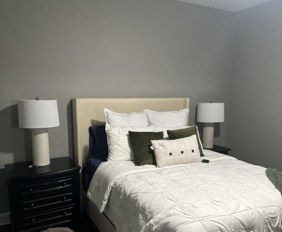 [This review was collected as part of a promotion.] Our Quinn Queen Upholstered Platform bed beautifully accents the room. Was the special something needed to change the bedroom into a classy look. Goes with any style of our bedding. Easy to clean and care for!