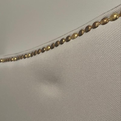 If you like reading or using your tablet or laptop in bed, you need a headboard to provide extra support. A headboard gives your room a very personal touch and allows you to show off your style. This gorgeous white full headboard features brass nailhead trim, fabric upholstery, and includes adjustable metal bed rail slots. The slim panel will make your room feel more spacious. Having just a headboard will provide you with floor space and makes it easy to make up the bed. Whether you're updating your master bedroom, guest room or furnishing your first apartment or home, this headboard will give a fresh, on-trend look to your space.