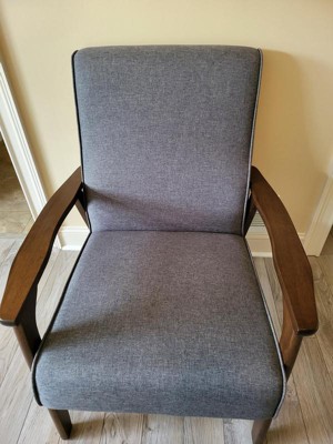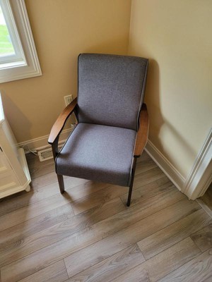 Needed a corner accent chair and the mid century modern look was perfect for our home style. The real wood arms make this chair look very nice and very sturdy. Assembly was so simple completed in 5 min. Would highly recommend this chair to anyone looking for a accent chair.