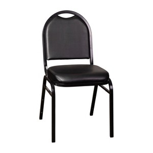 Product Name: Emma and Oliver Dymoke Versatile Dome Back Stacking Banquet Chair with Black Vinyl Seat and Back and Black Frame