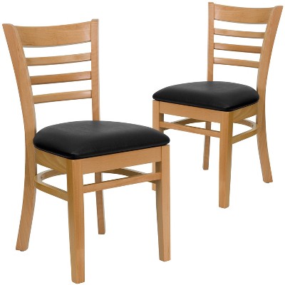 Emma and Oliver Vertical Slat Back Natural Wood Chair, Black Vinyl Seat