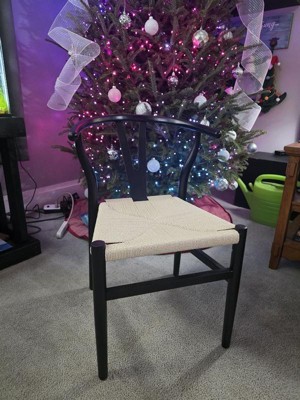 Emma and Oliver Y-Back Style Wooden Dining Chair with Kraft Paper Rope Seat, Stackable Design, and Black/Natural Finish
