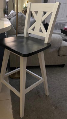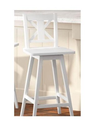 [This review was collected as part of a promotion.] Giselle white cross back swivel bar stool is very pretty. The chair can go with an antique decor or more modern decor, it's very versatile. I had a hard time choosing between the white seat vs the dark seat. They are both beautiful.