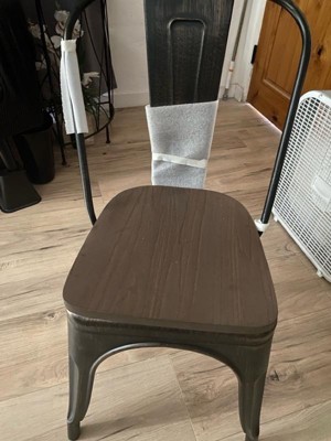 [This review was collected as part of a promotion.] This Belnick metal chair is so nice. It's very sturdy with a great black color painted. The wood seat top adds a nice dark brown pop to it. It's a perfect size.