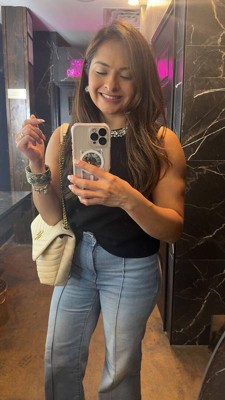 Love this shirt so cute to dress up or down. Great quality and the material is soft. The jewels add a beautiful detail so you don’t have to accessorize much. Wear with jeans, shorts or skirt for date night. I got the small but it fits loose, I added a photo and when sitting you can’t tell. But you can tuck in jeans and it’s not noticeable.