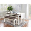 Bought this table on a great sale, along with two matching benches and two matching chairs. I am pleased with their design and quality. It was also pretty easy to assemble. I like the use of two benches for the skinny dining space I had to work with.
