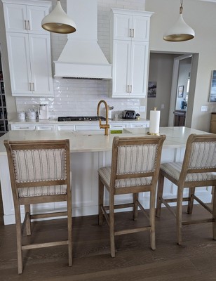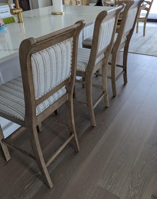 [This review was collected as part of a promotion.] French style and farmhouse design combine to create the Emmy Counter Stool. The washed finished wood is perfectly accented by the stripe ticking fabric I personally used a handyman to put together