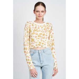 Add Spring colors to your closet with this crewneck pullover sweater from Emory Park. This floral patterned long-sleeve sweater brings an updated look to your wardrobe. Fashioned in a comfortable mid-crop fit, it features an adjustable back tie with ribbed cuffs and hem. This versatile style pairs well with any style of bottoms perfect for any occasion.