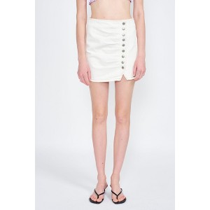 Add a trendy updated basic to your closet with this denim mini skirt from Emory Park. This high-rise skirt is comfortable to wear and provides an easy, secure fit with the full back zipper. Features front buttons and ruching for on-trend appeal. Pair with a t-shirt and tennis shoes for a great causal look.