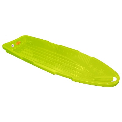 Have winter fun like never before with a sled that’s both cool and functional. The 48-Inch Sno Cruiser Two-Rider Sled from EMSCO Sports Products is the perfect snow sled for you! The brightly colored Day Glow finish reflects off sunlit snow, lighting up in a fluorescent display as you speed down the slopes. You’ll dazzle riders around you as you rip through the snow in this amazing sled. And because it’s so bright, you’ll never lose it in a sea of other sledders. Crafted with precision in the USA, this sled has a durable polyethylene construction that is built to withstand heavy use. The sturdy structure offers superior resistance against impacts in freezing temperatures – making it the ideal sled for outdoor winter fun. It features tracking rails designed to give you balance and stability when speeding down a snow-covered route. You can also ride the toboggan in your preferred position; seated or laying down. The side handles feature an ergonomic design that facilitates a comfortable grip, and the molded ribbed panels allow you to hold on tightly without straining your hands. The sled’s bottom surface is diamond-polished for maximum speed in the snow. Additionally, this sled showcases a 48-inch structure to let you and your loved ones have fun together. This sled comes in a bright neon color, making it easy to spot anywhere. Enjoy amazing sled races with this heavy-duty toboggan and become winter champion of the hill with the ESP Day Glow Sno Cruiser Two-Rider Sled!