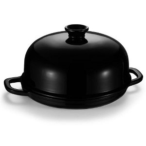 - Perfect Crust: The heavy domed lid traps and circulates steam, saturating each dish with flavor and giving doughs a glossy, crispy crust.