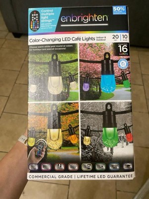 Enbrighten 20 Bulb LED Wi-Fi Color Changing Outdoor Cafe String Lights Black