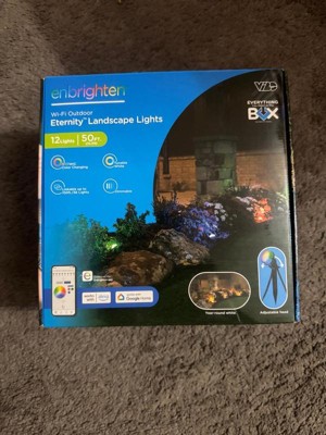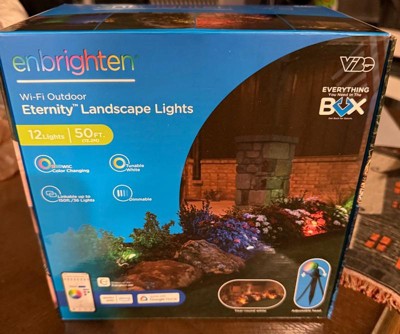 Enbrighten VIBE Eternity Landscape Lights are designed to transcend other permanent outdoor lights. They’re built to make your home’s lights an extension of your personality — lighting meets lifestyle. Each LED puck is expertly crafted using the highest quality RGBWIC LEDs, providing true-color illumination with full, rich colors. Perfect for every holiday, event or season, your dream lighting setup has endless color combinations, dynamic modes, customizable effects and more. Streamlined and simple, everything is controlled through the free Enbrighten app available in the Apple App Store and on Google Play. Eternity Lights are created to last. Weatherproof and IP67 rated for the elements, it’s the perfect addition to your garden, lawn, flower bed, patio and more. Using the sturdy snap-on stake, the pucks install securely in moments. UV-resistant cable ensures worry-free operation with a discreet appearance. The subtle LED pucks are virtually invisible when installed and envelop your space in a cascade of color when on. For added flexibility, connect multiple strands or extensions up to 150ft. For your lifestyle, for forever — Enbrighten VIBE Eternity Landscape Lights.