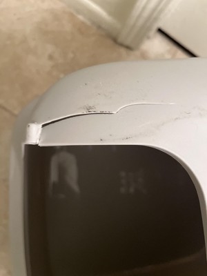 Q: My 2 cats urinate standing up so it goes high up the back & sides. My question is does this litterbox leak urine? it seems most with a attached lid leak where the top & bottom seams connect. Thanks