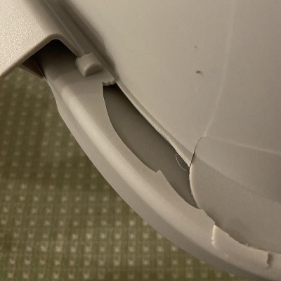 Q: The little plastic piece that keeps the door hanging broke, now the door won’t attach itself anymore. What should I do?