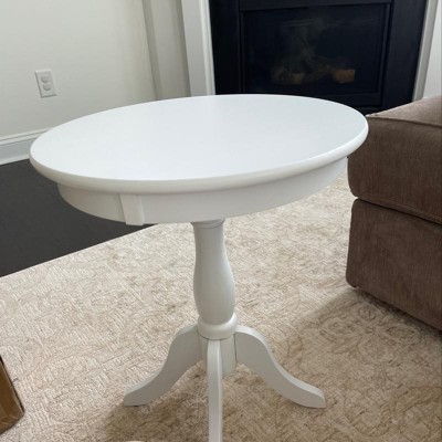 This table is good looking as far as design goes. The paint and wood look nice, easy to assemble, four feet slide into slots, the stem twists into the base and top, 10 minute total assembly. I bought table on a cyber Monday promo code and for the value I will keep it. I would say its worth maybe $39. The table is a little unstable and rocks a bit. The four feet slip into the post and do not sit flush into each slot. There is a visible gap at the base of the table stem. Its a quality control issue. You get what you pay for.