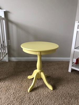 I was a little worried about the color since each product picture looks different but it turned out to be a nice butter yellow. What I don’t like about it is that the legs are uneven and the paint is already chipping in a few spots.