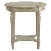 Create an elegant look in your living room, den or sitting room with the Off-White End Table from Acme Furniture. This beautiful round accent table has scalloped edging for an appealing look, and turned-wood spindle legs provide a touch of classic design. A bottom shelf adds space that's perfect for displaying a stack of books or a decorative vase, and the distressed white finish lends a hint of farmhouse charm.