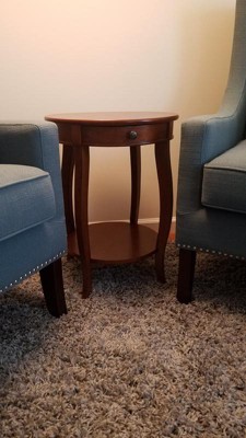 I love this table! It's perfect fort a small spot and is so easy to put together. I like the drawer to put remote controls or coasters into. I also like the shelf on the bottom to display home decor.