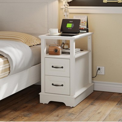 LINSY HOME End Table with Charging Station, Storage Cabinet, and Adjustable Shelf, Modern Nightstand