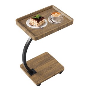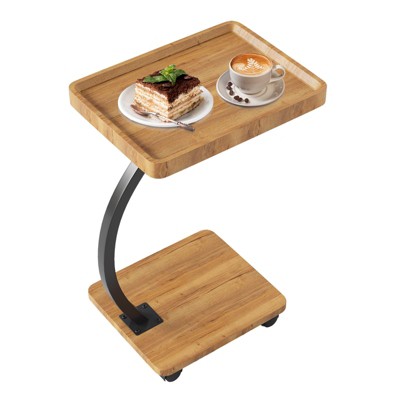 End Table with Rolling Wheels, C Shaped Side Table for Couch, Tv Tray Table with 2-Layer Storage Shelves
