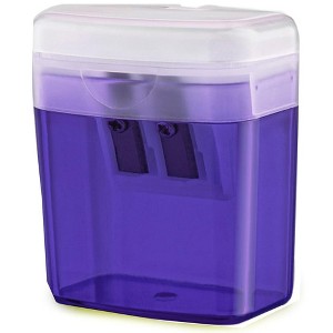 - With a container to catch the falling shavings the double holed handheld sharpener will leave no mess behind.
