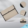 - With a water-resistant lid and secure, snap closure, the file holder will keep its inner contents safe and accessible.