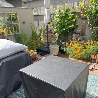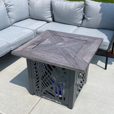 Love this table, looks great with our gray patio furniture. I don’t like the glass rocks that comes with it, it gets very messy when opening the back so be careful and don’t just dump the bags out like I did, wish it came with lava rocks (I ordered that online)