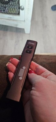 Be prepared for any adventure with the Jeep Sleek Metal Rechargeable LED Flashlight, a conveniently small flashlight that delivers exceptional brightness in a uniquely compact and portable design. This powerful flat flashlight is lightweight and easy to carry, with a versatile clip and a magnet for hands-free use or storage. Up to 15X brighter than standard LED technology, the bright flashlight emits up to 1,250 lumens of LED light on Boost mode, with a 100m beam distance that spans a stadium field. Use the easy-to-operate push buttons to switch between eight different light modes, including Area, Spot, Boost, and Strobe. Built from durable aircraft-grade aluminum, this compact flashlight offers the strength and resilience you need for tough excursions. It’s rated IPX4 water-resistant, can withstand drops up to 1m, and features a shatterproof lens. The USB-C rechargeable flashlight lasts up to 20 hours on a single charge so you’re always ready for the journey ahead. Pack this portable flashlight for your next on or off road adventure. It makes a great everyday carry (EDC) flashlight, camping flashlight, car flashlight, or travel flashlight and is the perfect practical gift for Jeep lovers. Go anywhere and do anything with the Jeep Sleek Metal Rechargeable LED Flashlight.
