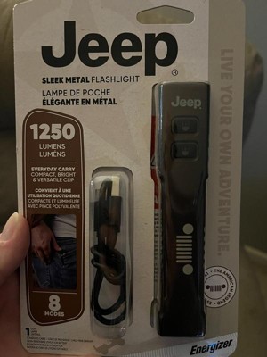 [This review was collected as part of a promotion.] This flashlight is awesome! This Jeep flashlight packs a punch in a small package. The every day carry belt clip is perfect for camping, tactical use, or just working around the house. This torch is made with a durable metal frame and its ultra bright 1250 lumen LED bulb puts it up with top tier tactical lights. No need for batteries either, as it’s rechargeable with a USB-C cord. In very impressed with this light, and I look forward to using it daily when I walk my dog.