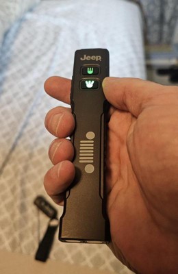[This review was collected as part of a promotion.] Just love my new jeep flashlight, very bright with adjustable brightness. Perfect to keep in your car. Emergency situation. Love the fact that you can charge it from your car.