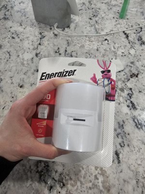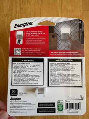 Easily transition from day to night with the Energizer LED Dimmable Night Light. This plug-in night light’s energy-efficient LED guides you safely through your evening routine, allowing you to adjust the light to your desired brightness level. The stylish, contemporary design features a glossy white finish that perfectly matches or enhances your existing décor, making this night light great for bedrooms, staircases, hallways, bathrooms and much more. Built-in light-sensing technology automatically turns on the light when the room gets dark, then off when the room is lit — ON at dusk, OFF at dawn, providing high-quality, dependable light when you need it most. Position the night light to conceal the entire outlet or plug it into the top receptacle to keep the lower receptacle free for use with other electronics. This LED night light is designed for safety and dependability, stays cool-to-the-touch and is UL-listed for your peace of mind. Enjoy the ease and reliability of the Energizer LED Dimmable Night Light.
