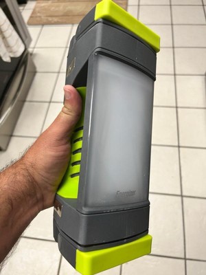 Energizer Pro Series Area Light offers intense brightness for a powerful indoor and outdoor area light. This durable hybrid powered LED area light is ideal as a work light or outdoor light. With 1,000 lumens, this LED light offers intense light. Multiple modes let you choose between 3 modes and then directional mode, which offers a beam distance of up to 150 meters. Waterproof and dustproof, this rechargeable work light features durable construction for rugged work lights and camping lanterns. Grab this area light securely using the nonslip grip. This work light includes multiple additional features including a hanger hook, adjustable legs to direct light, non-slip grip, tripod adaptable, magnets for attachment and storage, and a rechargeable battery life indicator all-in-one light. This rechargeable area light has a run time of up to 60 hours on low.* Trust in Energizer to deliver the powerful performance we promise — Energizer lights are tested and adhere to strict, reliable ANSI standards.