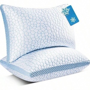 Enhanced Cooling Pillows, Shredded Foam 2 Pack, Queen Size, Supportive Soft for Side/Back Sleepers