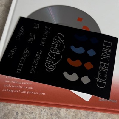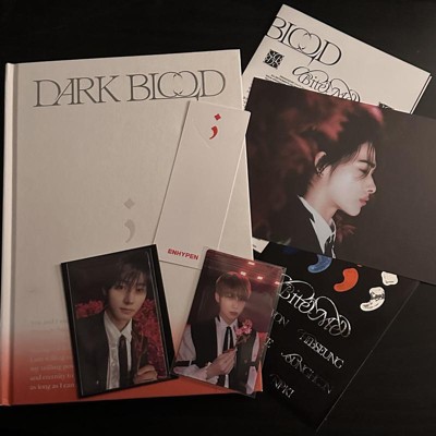 - After their successful world tour and first Top 10 album on the Billboard 200, ENHYPEN members JUNGWON, HEESEUNG, JAY, JAKE, SUNGHOON, SUNOO, and NI-KI are back with a brand-new album DARK BLOOD, which tells the story of regret, sacrifice and love. Available in 3 versions: Full, Half and New. Contents of the album include CD, Photo Book, Photo Card (random 1 of 7), Message Photo Card (random 1 of 7), Sticker, Post Card (random 1 of 7), Bookmark and Poster w/Lyrics. Dimensions: 246 x 176 x 17 mm.
