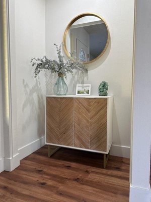Enloe Wood 2 Door Storage Cabinet Matte White/Wash Wood - Nathan James: Adjustable Shelves, Metal & Wood Frame