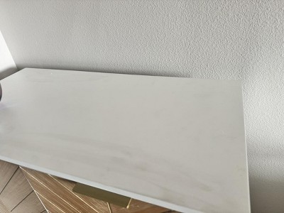 This is a great piece! It arrived quickly, was relatively easy to put together, even by myself, and looks very good for the price. It did have very minor scratches on the top, but nothing that was noticeable after I used a wood marker to fill them in a bit. I'd definitely recommend.