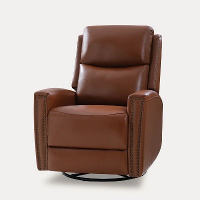 This armchair creates an important place to sit and enjoy a good book or catch up on your favorite show. Made with a solid and manufactured wood frame, it features brown-turned legs, dependable arms, and a tufted backrest, creating a silhouette that transitions from traditional elements to a modern design. The top-layer cowhide interior is paired with a thick foam-filled seat cushion and has a spring seat structure that provides just the right amount of rebound support. The high-end and classic design of the nail head trim adds a decorative touch to the armchair. Sit in this armchair in front of a warm fireplace or an elegant study for super comfort and enjoyment.