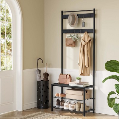 Entryway Hall Tree, 4-in-1 Freestanding Coat Rack w/Shoe Storage Bench, 3-Tier Shelf, Hanging Rod & 8 Adjustable Hooks for Entryway Bedroom