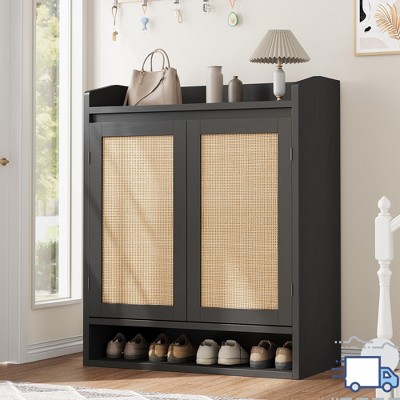 Entryway Shoe Cabinet with 2 Flip Drawers, Slim Freestanding Wooden Shoe Organizer, Space-Saving Closed Shoe Rack for Hallway, Foyer,Apartment