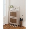 Entryway Shoe Storage Cabinet with 2 Flip Drawers, Slim Narrow Shoe Cabinet with Weaving Panel, Freestanding Shoe Rack Organizer for Closet, Hallway