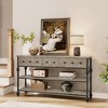 This grey entryway console table is a stylish addition to your living room, perfectly designed for versatile use. Featuring a three-tier industrial metal and farmhouse style, this console table offers ample storage space with a convenient drawer. Place it behind your couch or in entryways, kitchens, or dining rooms for a chic and functional accent piece. Keep your space organized while enhancing your home decor!