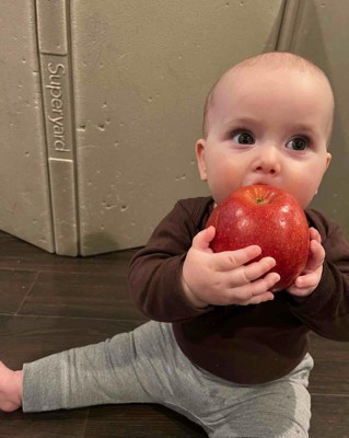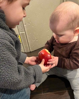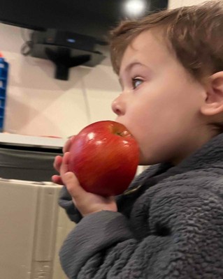 [This review was collected as part of a promotion.] Crisp bite with a sweet and juicy taste. Really cannot ask for more from an apple. I like the vibrant red color as well. As you can see both of my kids enjoyed this apple too. The outside was firm which I prefer but the inside was juicy without being mealy which made it easy for my kids to bite I received an incentive to write this review.