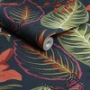A full roll of this product is 20.5 inches wide and 396 inches long. A full roll can cover up to 56 square feet depending on the design match and pattern repeat. A sample of this product is 8 inches by 11 inches. Create a dramatic paradise on your walls with the Eden Night Wallpaper. Coral and green tropical florals and leaves sit atop a dark navy-blue backdrop for a moody effect. Perfect for creating a beautiful botanical interior. Textured wallpaper covers minor wall cracks, bumps and imperfections. Straight match with a 38 inch pattern repeat.