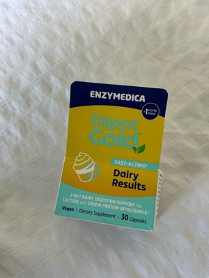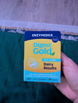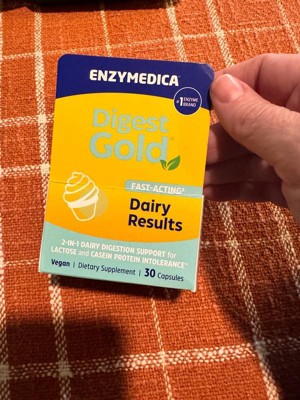 [This review was collected as part of a promotion.] I have a sensitive stomach when it comes to dairy, and this supplement has been a game-changer. Enzymedica’s Digest Gold – Dairy Results works fast and effectively—it really lives up to the “fast-acting” claim. I take one capsule right before eating anything with dairy, and I’ve noticed a big difference: no bloating, discomfort, or unexpected bathroom trips. What sets this apart is that it’s not just for lactose intolerance—it also helps with casein protein, which most dairy pills don’t address. It's vegan, easy to swallow, and comes in a compact bottle that’s great for on-the-go. I feel like I can enjoy foods I used to avoid, like cheese, ice cream, or creamy sauces, without worrying about the aftermath. Highly recommend this if you’re dairy sensitive but don’t want to give up your favorite foods. It’s definitely worth the investment for your comfort and confidence.
