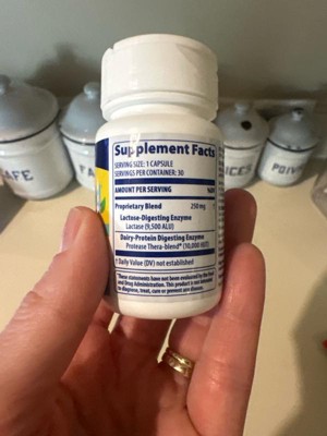 - Superior 2-in-1 dairy digestion support with protease Thera-blend enzymes to break down lactose (milk sugar) and casein (milk protein)*