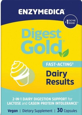 Put dairy back on the menu with Digest Gold Fast-Acting Dairy Results from Enzymedica, the #1 Enzyme Brand. This comprehensive formula delivers the enzyme power you need to fully digest dairy.* Dairy contains more than just lactose (milk sugar), so our enzymes are designed to target more as well. Casein, a protein found in dairy, can also cause digestive discomfort for some people.* The discomforts caused by lactose and casein happen when there's a natural shortage of the digestive enzymes that help break down the nutrients in milk and dairy. And the bigger the portion, the more enzymes your body needs to break it down.